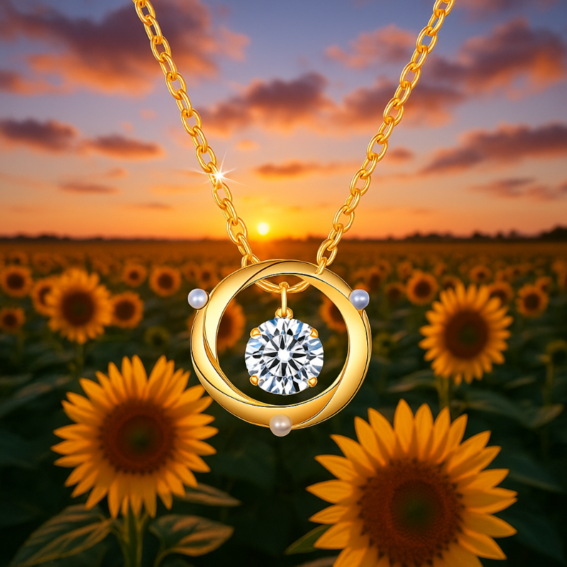 Este collar presenta un hermoso colgante circular con una circonia central brillante estilo diamante, rodeada por un aro de acabado dorado suave y delicadas perlas de imitación que añaden un toque de dulzura y feminidad.
